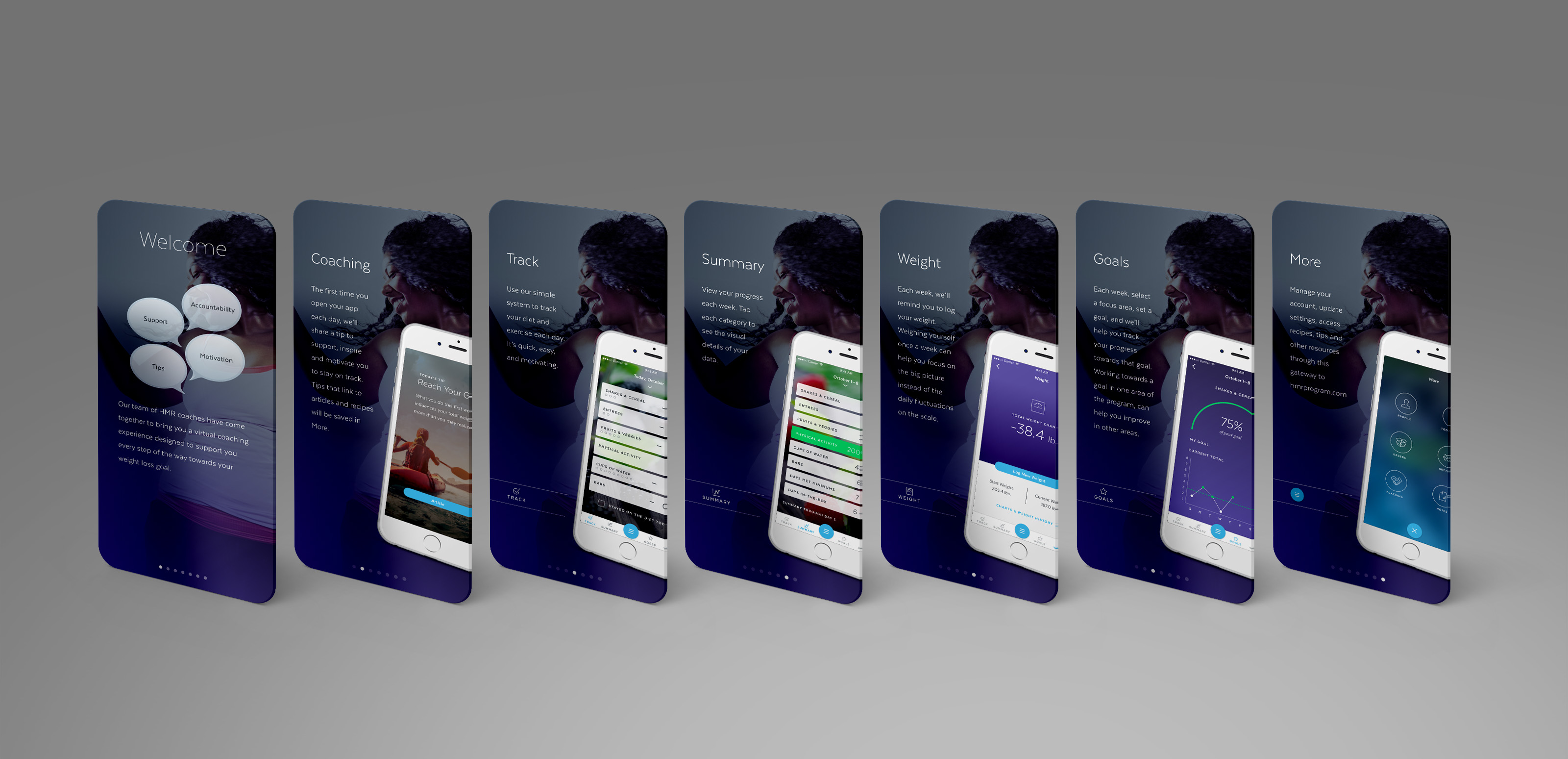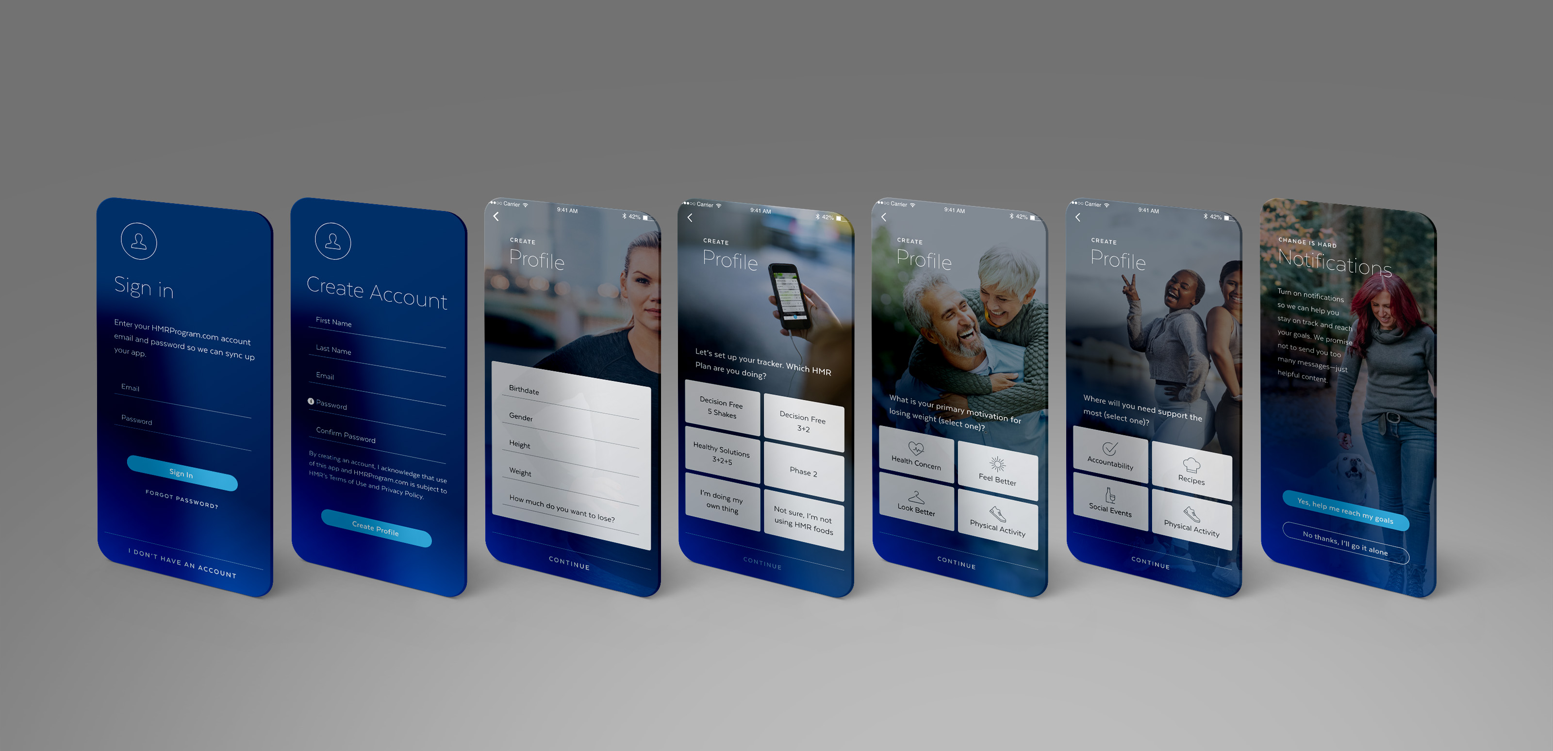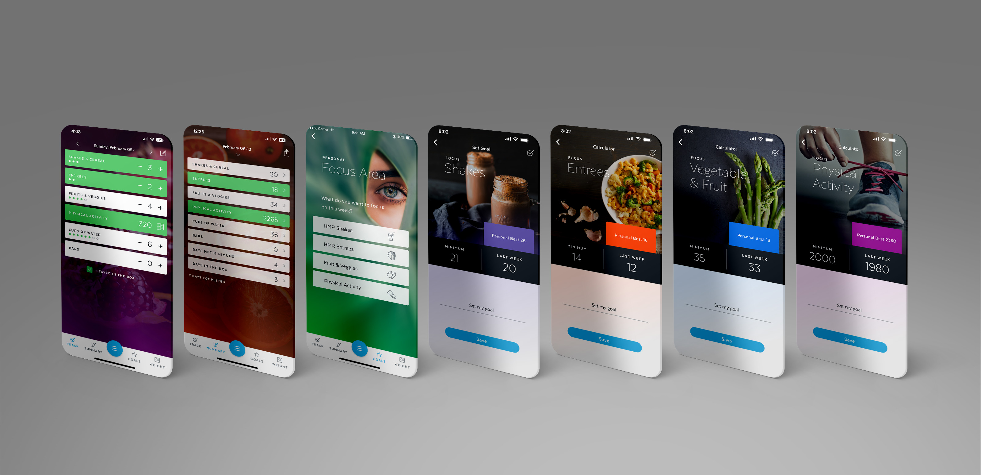 In 2017 after completing an overhaul of the HMR digital brand, I was tasked with creating an app that would be used as a companion to the program. This app should be visually cohesive, simple to use, allow for tracking program principles, and provide valuable feedback to users. The mission was to create an MVP that could eventually deliver digital coaching to the 70% of users who want to diet on their own. I was the primary UX designer and the sole UI designer.